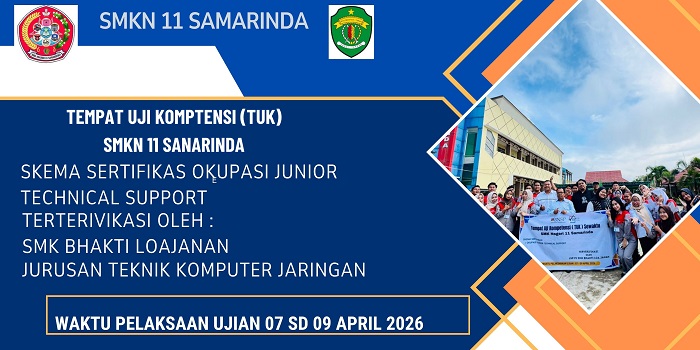 SELAMAT MELAKSANAKAN UJIAN SERTIFIKASI KOMPETENSI DAN UJIAN KOMPETENSI KEAHLIAN KJURUSAN TEKNIK KOMPUTER JARINGAN 27 Apr 2026 Telah dibaca : 4 kali Bagikan ke : Facebook Twitter WhatsApp LinkedIn