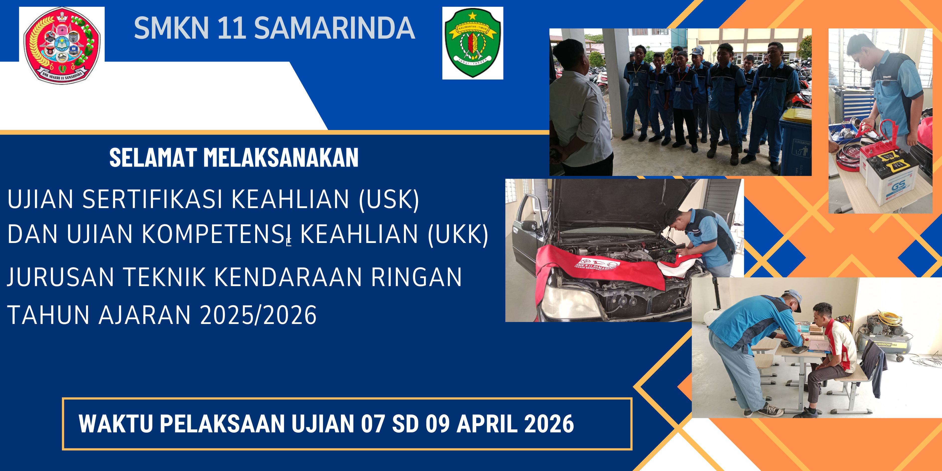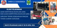 SELAMAT MELAKSANAKAN UJIAN SERTIFIKASI KOMPETENSI DAN UJIAN KOMPETENSI KEAHLIAN JURUSAN TEKNIK KENDARAAN RINGAN 29 Apr 2026 Telah dibaca : 5 kali Bagikan ke : Facebook Twitter WhatsApp LinkedIn