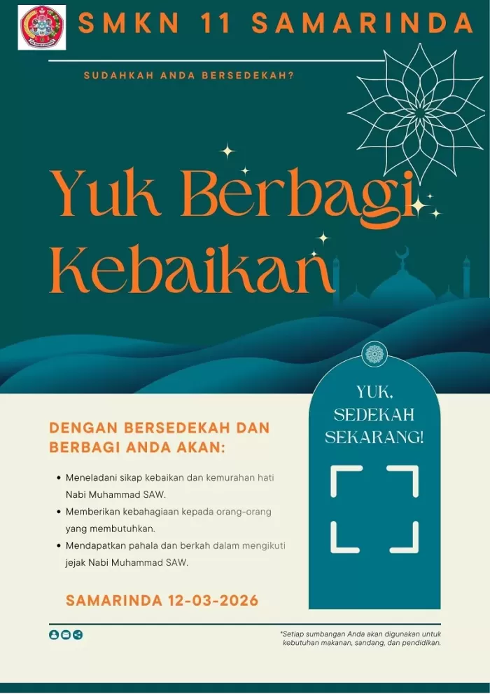 SMKN 11 SAMARINDA KEGIATAN SHADAQAH DI BULAN RAMADHAN, SAMARINDA 12-03-2026 DIAWALI PENYERAHAN SAHDAQAH KE SISWA KEPALA SEKOLAH ELIS SURYANI,M.Pd :
